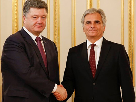[[image1]]Zuletzt hatte es Bruno Kreisky, der den damaligen Palästinenserführer Jassir Arafat und Libyens Revolutionsführer Muammar Gaddafi ständig abzubusseln pflegte, mit seinen teilweise schrägen Missionen noch geschafft, im Ausland großflächig Beachtung zu finden. Das peilt nun offenbar auch Werner Faymann an. Der Kanzler hatte in der Causa Nummer Eins bereits einmal mit Wladimir Putin telefoniert, um Anfang Oktober gemeinsam mit Wirtschaftskammer-Präsident Christoph Leitl den ukrainischen Präsidenten Petro Poroschenko in Kiew zu besuchen. Rund zwei Wochen zuvor war zwar schon Österreichs wieselflinker Außenminister auf einer Kurz-Visite bei Poroschenko, doch der Zeitdruck war zu groß, als dass dabei etwas Handfestes hätte rauskommen können. Auch für den Kanzler blieb es letztlich beim Austausch von allseits bekannten Stehsätzen und dem protokollarischen Shakehands – mehr war wohl einfach nicht drinnen.