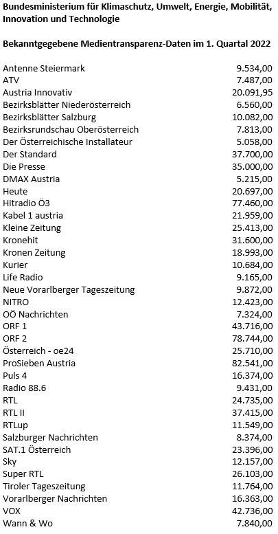 Was spricht für eine (selbsternannte) Sauberpartei dagegen, ihre Postenbesetzungen transparent und öffentlich zu machen, zumal die Medien dieser ihr als vierter Macht im Staat zustehenden Aufgabe nicht nachkommen? Was daran liegt, dass die Medien selbst Teil des grünen Netzwerkes, ein Großteil der Journalisten Sympathisanten bzw. Wähler der Grünen sind und selbst jahrelang aktiv mitgeholfen haben, das Image der grünen Sauberpartei in der Bevölkerung zu festigen. Das macht man nicht nur aufgrund seiner weltanschaulichen Übereinstimmungen mit den Grünen, es zahlt sich auch aus: Das Infrastrukturministerium von Leonore Gewessler hat allein im ersten Quartal dieses Jahres um fast 900.000 Euro in den diversen heimischen Medien geworben. Der ORF und ProSieben Austria wurden mit besonders großen Summen bedacht.