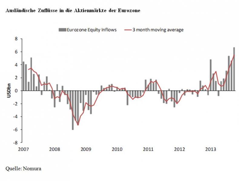 Die USA und Japan, die die beiden weiteren wichtigen „Weltwährungen“ stellen, haben diesen Weg jedenfalls längst beschritten, was ein Hauptgrund dafür sein dürfte, dass das internationale Kapital seit einem halben Jahr massiv in die europäischen Aktienmärkte zurückfließt und den Euro in die Höhe treibt.