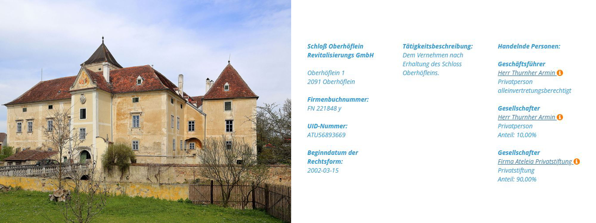 Schloss Oberhöflein, Bwag, CC BY-SA 4.0, via Wikimedia Commons / Auszug Firmen ABC
