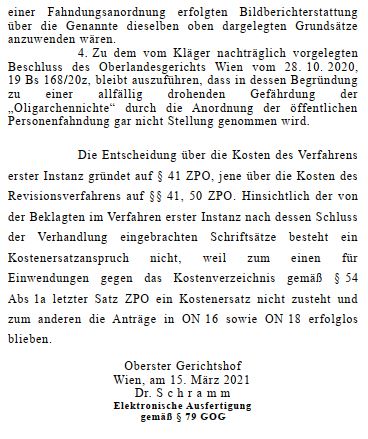 Es gibt einen hochrangigen Trost: der Oberste Gerichtshof hat in einem Urteil „Mirfahkrai gegen Omnia Online Medien GmbH / EU-Infothek / Prof. Gert Schmidt“ am 15. März 2021 festgestellt: