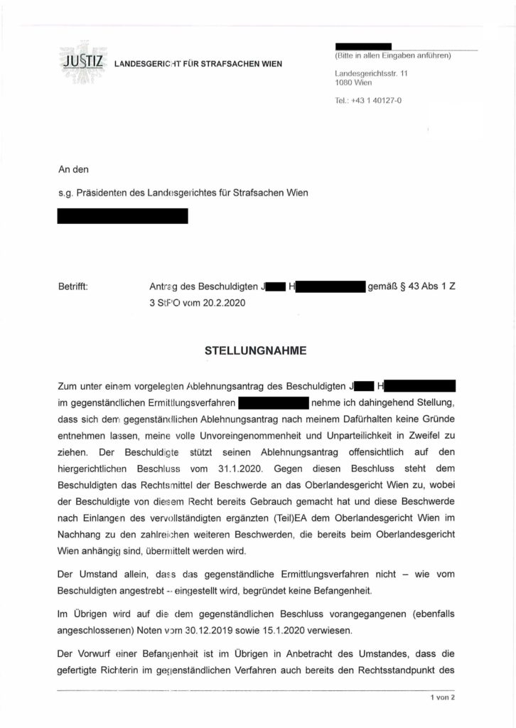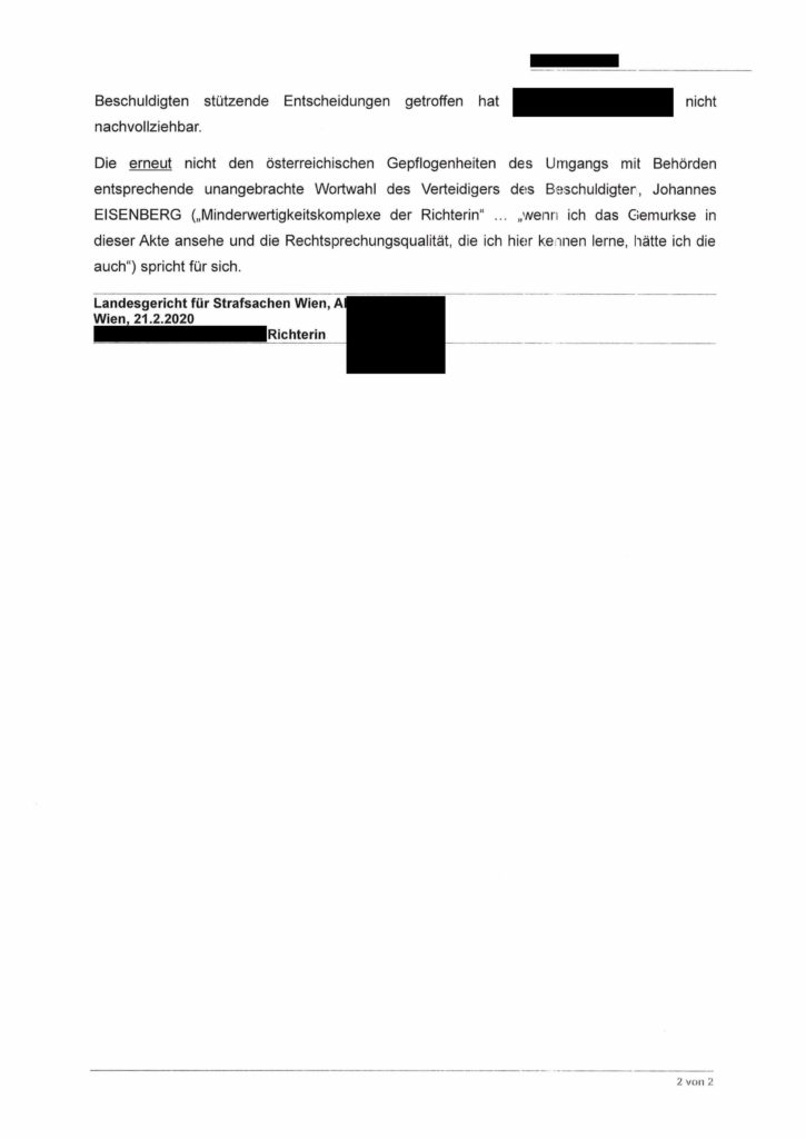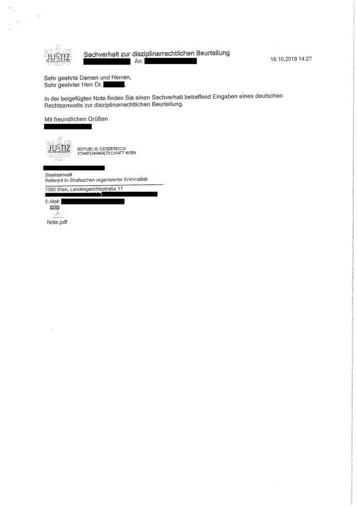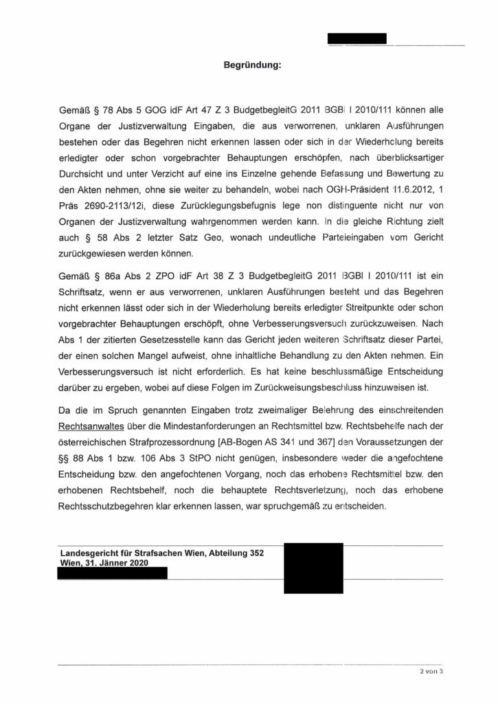Ggf. liegt genau in diesem Verdacht der Grund, warum die Strafjustiz in Wien die Unbeachtlichkeit sämtlicher Eingaben des Anwalts beschlossen und ihn damit faktisch als Verteidiger kaltgestellt hat.