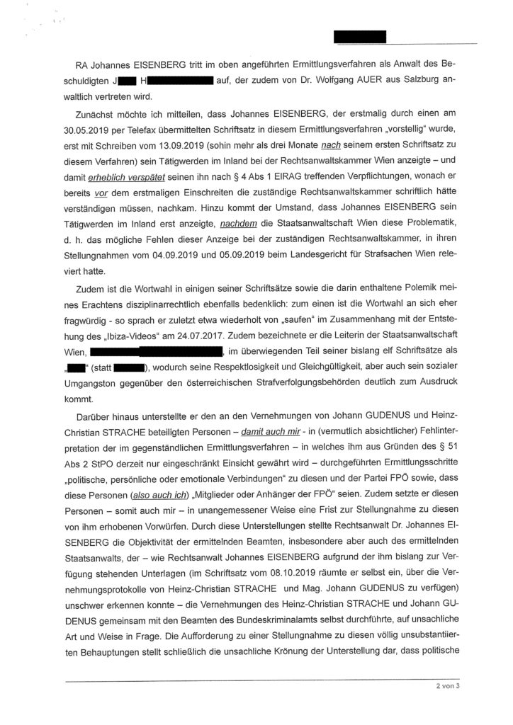 Startseite / Allgemein / Ibiza-Gate: Disziplinaranzeige der StA Wien gegen Rechtsanwalt Eisenberg