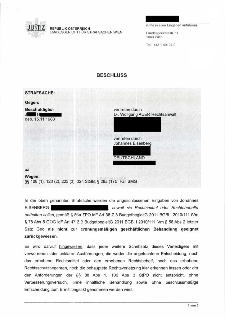 „Best of Eisenberg“ – Zitate aus seinen Schriftsätzen an die StA Wien