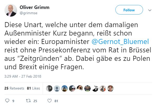 Gernot Blümel weilte am 27. Februar 2018 tatsächlich zu Brexit-Verhandlungen in Brüssel.