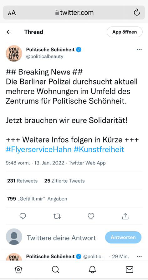 In Berlin fanden heute Hausdurchsuchungen statt, welche nach EU-Infothek vorliegenden Informationen in Zusammenhang mit Prospekten und der AFD stehen. Vielleicht gibt es auch einen „Beifang“ über mögliche Aktivitäten mit Julian Hessenthaler, so wie wir diese auch aus österreichischen Verfahren kennen.