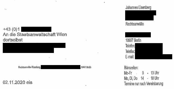 Der Herr RA Johannes Eisenberg in Berlin hat den Einstellungsbeschluss der STA Wien zu seiner Verleumdungsanzeige nicht akzeptiert und in einer Tonart, welche österreichische Gerichte und auch österreichische Anwälte nicht gewohnt sind, dagegen mit einer weiteren schriftlichen Eingabe polemisiert.
