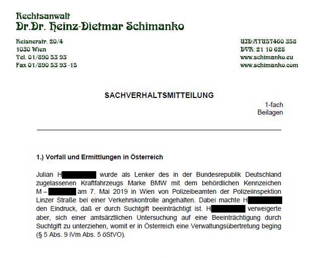 Diese weitere Sachverhaltsdarstellung erfolgte im Auftrage von EU-Infothek und befasst sich detailliert mit dem Thema „Führerschein“ des J.H. sowie Leihwagen und den damit zusammenhängenden Vorwürfen in Deutschland.