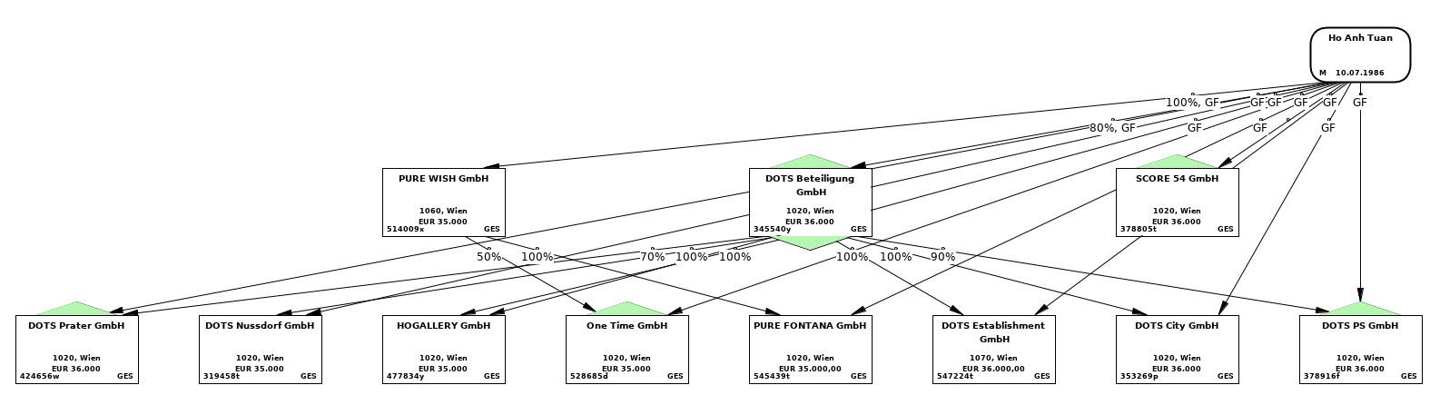 Das vorliegende (nicht garantiert 100 %-ige) Organigramm der Firmengruppen des Mr. Ho ist sehenswert: Es finden sich auch sehr prominente Namen von Rechtsanwälten unter seinen Partnern!