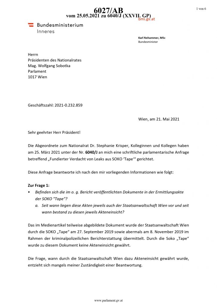 Bitte lesen Sie diese wohl sehr bemerkenswerte parlamentarische Anfrage der NEOS zum Thema „Julian H.“ und die aktuellen Antworten des Herrn Bundesministers Karl Nehammer, MSc.