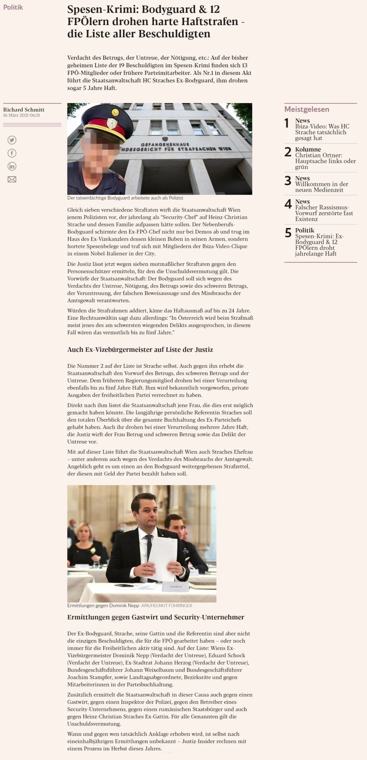 Startseite / Allgemein / Spesen-Krimi: Bodyguard & 12 FPÖlern drohen harte Haftstrafen – die Liste aller Beschuldigten